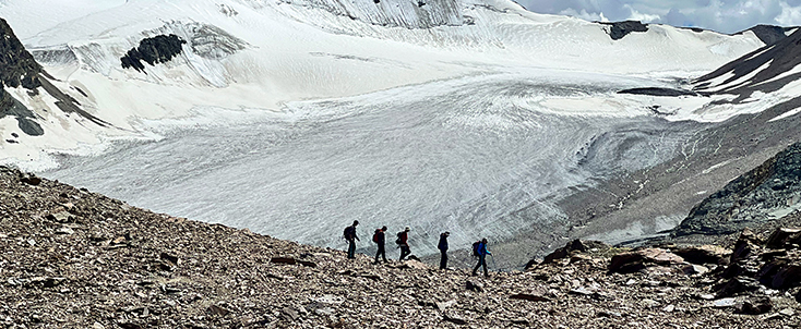 Peak is less frequented and less technical; participants are not required having climbing technical skill but previous trekking experience of high-altitude terrain and good physical condition is essential.